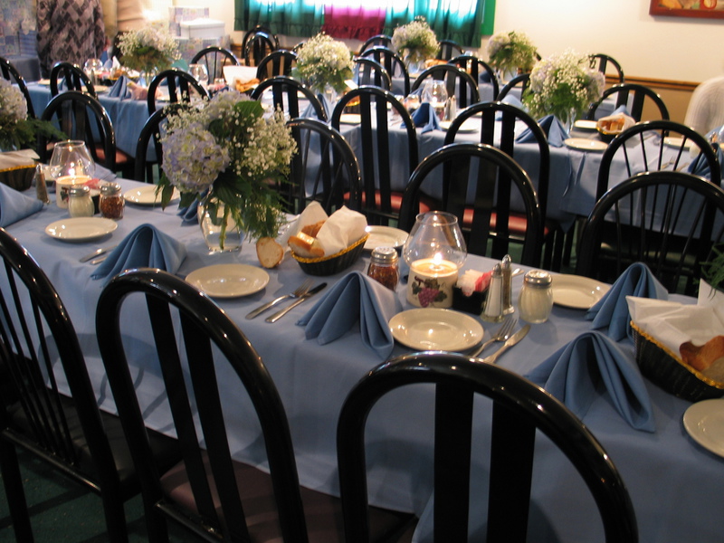Below are some photos of the Cafe and how it can be decorated for your special event. Birthdays, Anniversaries, Wedding & Baby Showers, Wedding Rehearsal Dinner, or for any Private Occasion, we can host your group! We can even come to you to deliver and setup at your location - whether it's a business, hall or home!